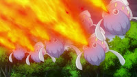 Nepřátelé, kteří koukají na jeho blikající světlo emitující skvrny na jeho těle, se stávají omámenými a ztratí chuť bojovat. Často odchází pryč a skrývá se.
